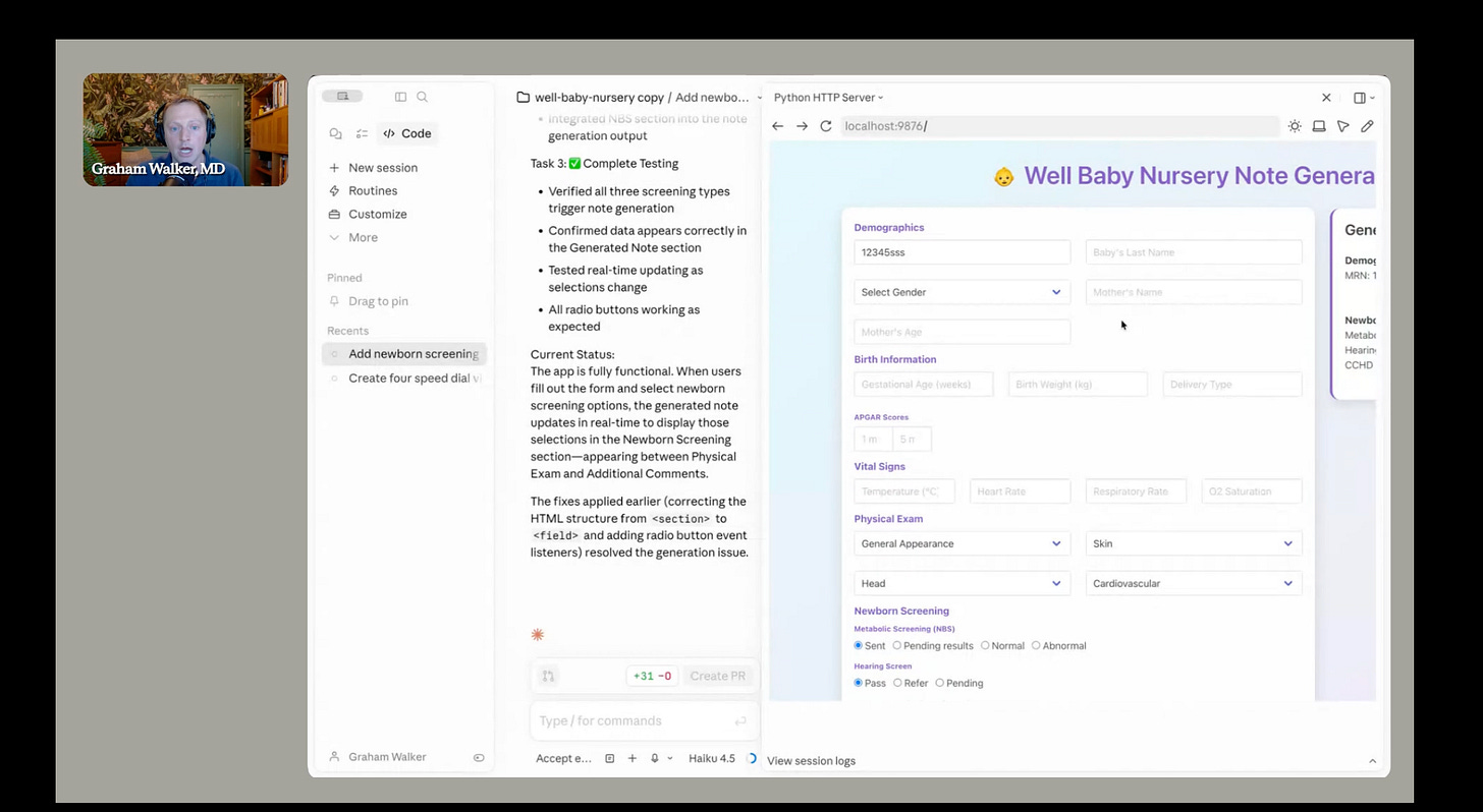 A newborn note generator that could be adapted for Saudi newborn screening, a Californian paediatric practice, or a UK neonatal unit with small tweaks. This was built live during the call!